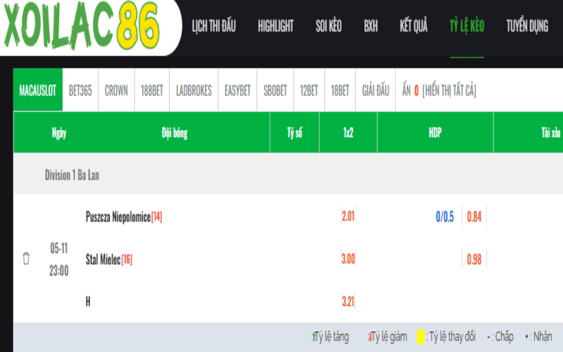 - Biểu đồ biến động kèo thời gian thực: Giúp người dùng theo dõi xu hướng thay đổi tỷ lệ, từ đó đưa ra nhận định chính xác hơn.
