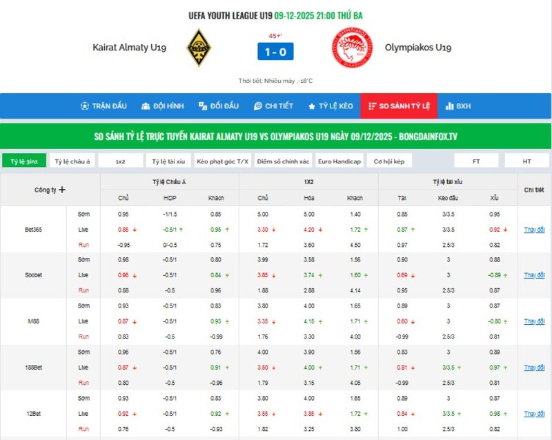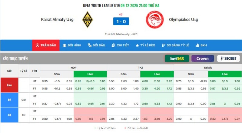 - Kèo live trong trận cũng chạy theo từng diễn biến thực tế