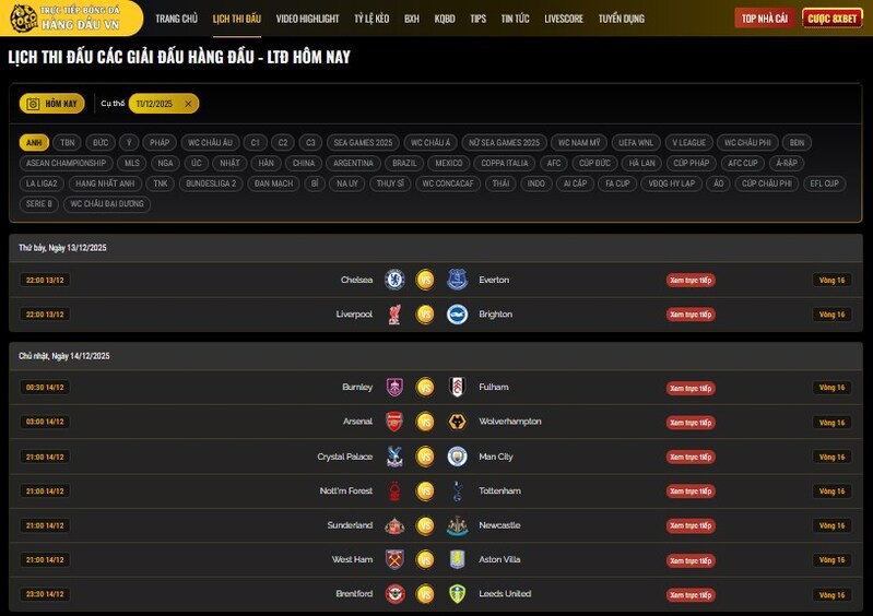 Anh em nào chỉ thích xem Arsenal, Man City hay MU có thể lọc riêng theo đội – cực tiện.